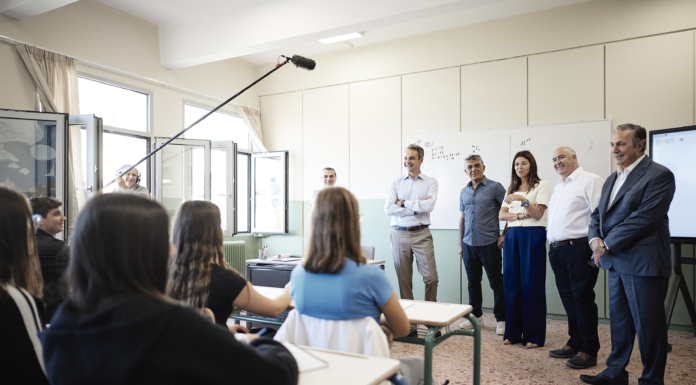 Ο Πρωθυπουργός, συνοδευόμενος από την Υπουργό Παιδείας, Θρησκευμάτων και Αθλητισμού Σοφία Ζαχαράκη και τον Δήμαρχο Περιστερίου Ανδρέα Παχατουρίδη, ξεναγήθηκε στις ανακαινισμένες εγκαταστάσεις του 5ου Γυμνασίου και του 5ου Γενικού Λυκείου Περιστερίου από τον Πρόεδρο του Ιδρύματος Ωνάση Αντώνη Παπαδημητρίου και τον Διευθυντή του Λυκείου, Ιωάννη Μανιατάκο. Ο Πρωθυπουργός συνομίλησε με μαθητές και εκπαιδευτικούς, οι οποίοι του μετέφεραν τις εντυπώσεις τους από τις πρώτες ημέρες εφαρμογής του νέου αυτού θεσμού στη δημόσια εκπαίδευση.
