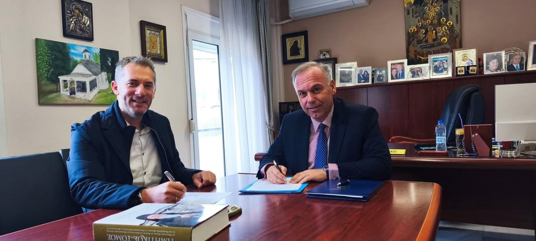 Σήμερα, Τετάρτη 8 Οκτωβρίου 2025, στο γραφείο του Δημάρχου Θάσου υπογράφηκε από τον Δήμαρχο Θάσου κ. Ελευθέριο Κυριακίδη και τον εκπρόσωπο του οικονομικού φορέα «Νικόλαος Τσήκος και Σια Ε.Ε.», κ. Νικόλαο Τσήκο, η σύμβαση για την εκτέλεση του έργου «Κατασκευή πεζοδρομίου έμπροσθεν νέων αιθουσών Γυμνασίου – Λυκείου Λιμένα Θάσου», συνολικής αξίας 69.986,00€, το οποίο θα χρηματοδοτηθεί από Δημοτικά Έσοδα.