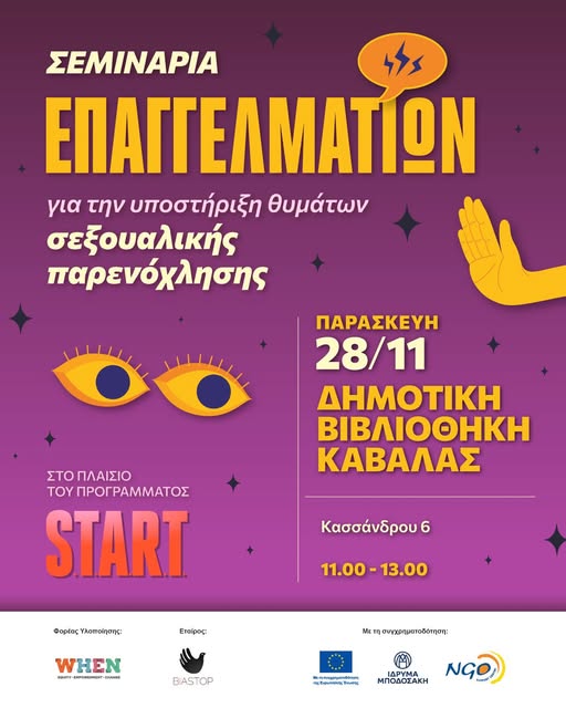 ΔΗΜΟΣ ΚΑΒΑΛΑΣ / ΔΗΜΟΤΙΚΗ ΒΙΒΛΙΟΘΗΚΗ ΚΑΒΑΛΑΣ “ΒΑΣΙΛΗΣ ΒΑΣΙΛΙΚΟΣ”: Σεμινάριο ευαισθητοποίησης & επιμόρφωσης επαγγελματιών για την υποστήριξη θυμάτων σεξουαλικής παρενόχλησης στην εργασία (28 Νοεμβρίου)