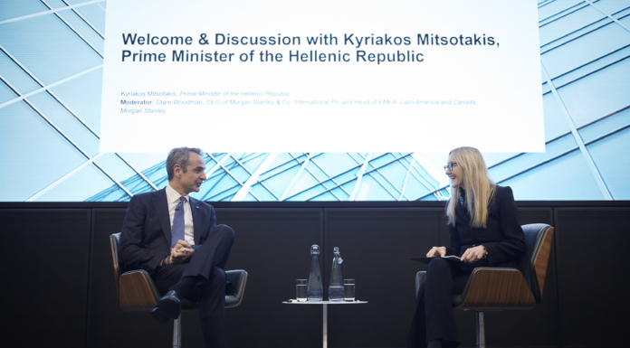 Ο Πρωθυπουργός Κυριάκος Μητσοτάκης συμμετείχε σε συζήτηση με την Clare Woodman, επικεφαλής της Morgan Stanley για την Ευρώπη, τη Μέση Ανατολή και την Αφρική (ΕΜΕΑ), τη Λατινική Αμερική και τον Καναδά, και Διευθύνουσα Σύμβουλο της Morgan Stanley & Co. International, στο πλαίσιο του Ελληνικού Επενδυτικού Συνεδρίου, που συνδιοργανώνουν η Morgan Stanley και το Χρηματιστήριο Αθηνών στο Λονδίνο. Ακολουθούν οι τοποθετήσεις του Πρωθυπουργού (ανεπίσημη μετάφραση από τα αγγλικά):