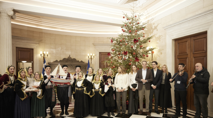 Τα κάλαντα είπαν στον Πρωθυπουργό και την οικογένειά του μαθήτριες και μαθητές του Μουσικού Σχολείου Αλίμου και μέλη του Πολιτιστικού Συλλόγου Ερέτριας «Κωνσταντίνος Κανάρης».