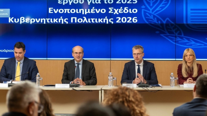 Το Ενοποιημένο Σχέδιο Κυβερνητικής Πολιτικής για το 2026 και τον απολογισμό του κυβερνητικού έργου για το 2025 παρουσίασαν σήμερα σε συνέντευξη Τύπου ο αντιπρόεδρος της Κυβέρνησης Κωστής Χατζηδάκης, και ο υπουργός Επικρατείας Άκης Σκέρτσος, ο υφυπουργός παρά τω Πρωθυπουργώ Θανάσης Κοντογεώργης και η Γενική Γραμματέας Συντονισμού Εύη Δραμαλιώτη.