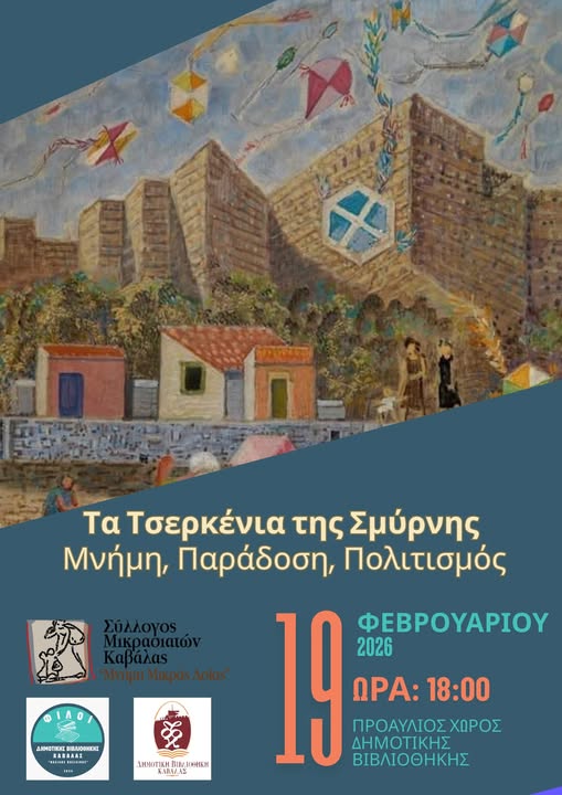 Ο Σύλλογος Φίλοι της Δημοτικής Βιβλιοθήκης Καβάλας «Βασίλης Βασιλικός», ο Σύλλογος Μικρασιατών Καβάλας «Μνήμη Μικράς Ασίας» και η Δημοτική Βιβλιοθήκη Καβάλας «Βασίλης Βασιλικός» σας προσκαλούν σε μια ξεχωριστή εκδήλωση αφιερωμένη στη μνήμη και την πολιτιστική κληρονομιά της Σμύρνης.